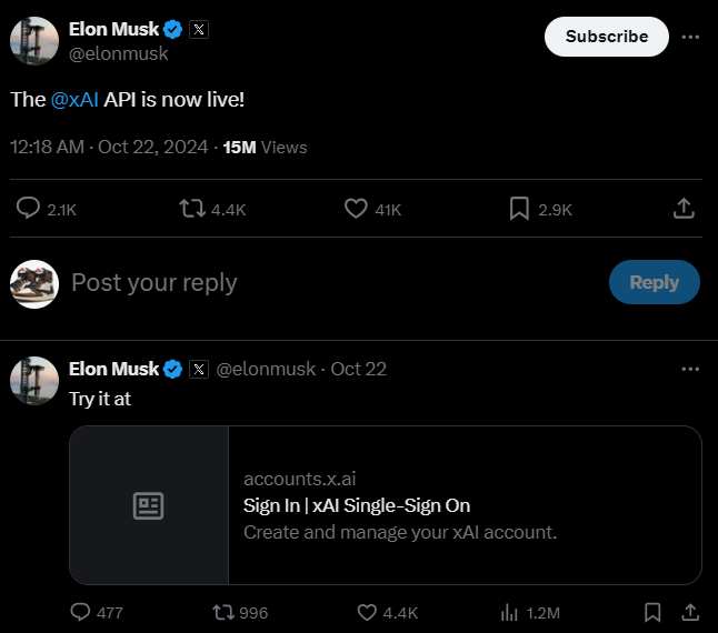 近日,馬斯克旗下的人工智慧新創公司 xAI 宣布,正式開放其 Grok 大型語言模型的應用程式介面(API),使開發者能夠利用該技術打造各類應用程式與功能。此消息在馬斯克因政治活動和 SpaceX 的火箭創新而備受矚目之際發布,顯示出他對 AI 領域的持續投入。
