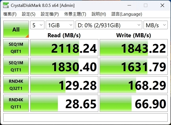 -讀取達2118MB/s寫入1843MB/s