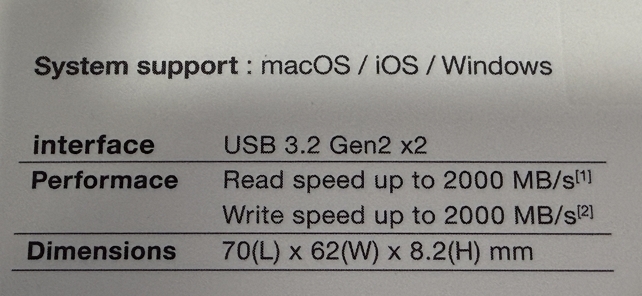 傳輸速度:USB3.2 Gen2x2