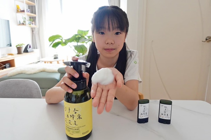 小橘媽表示,自己擁有八年的製皂經驗,家中兩位寶貝也漸漸地來到成長發育期,更加重視早熟問題,精心研發出一款母嬰友善的泡泡皂。泡泡皂不僅可以從頭到腳全面清潔,免去繁瑣的瓶罐,讓小孩使用時更為便捷,且無需手動搓揉即可輕鬆按壓出綿密泡沫。特別調配的複方精油,連孕媽咪也能安心使用,香氣清新不刺鼻,與市面上大多數過於濃烈的沐浴產品有所不同。製作過程中,選用植物到手香萃取油,採摘新鮮葉片後,經過細心清洗與小火慢慢萃取,保留對肌膚有益的成分。堅持不添加任何非必要的化學成分,且秉持對顧客的責任心,送至SGS多項檢測,讓每一罐泡泡皂都安全無虞,溫和呵護每一寸肌膚,同時對人體和環境都更加友善。