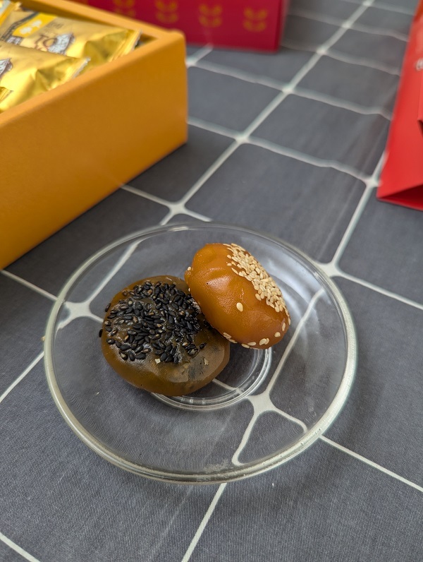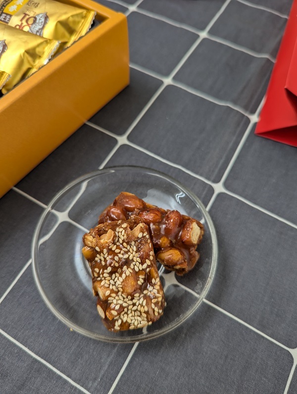 而我們先吃的是花生軟糖,照片上是原味和芝麻口味