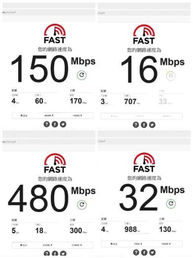 測速位置:左上:客廳、右上:書房、左下:臥室、右下:另一間書房