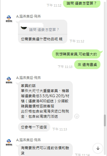 運費的部分也會說得清清楚楚,另外也有免費幫忙驗貨的服務,他們算是專送海運大件的集運商,也因此價格會更划算