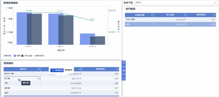 費用分析,主要是透過分析企業預算與實際費用資料的對比&趨勢,幫助企業及時把控經營情況。