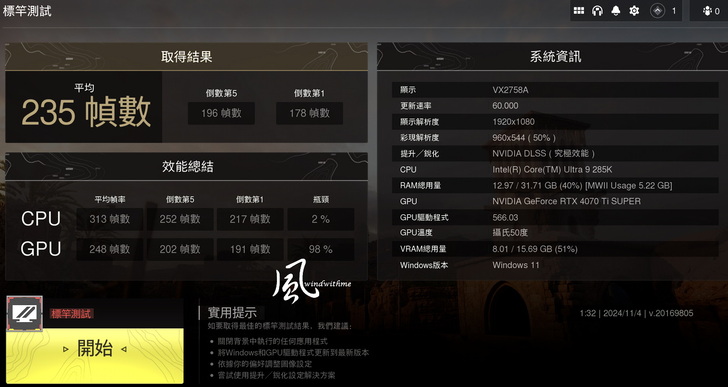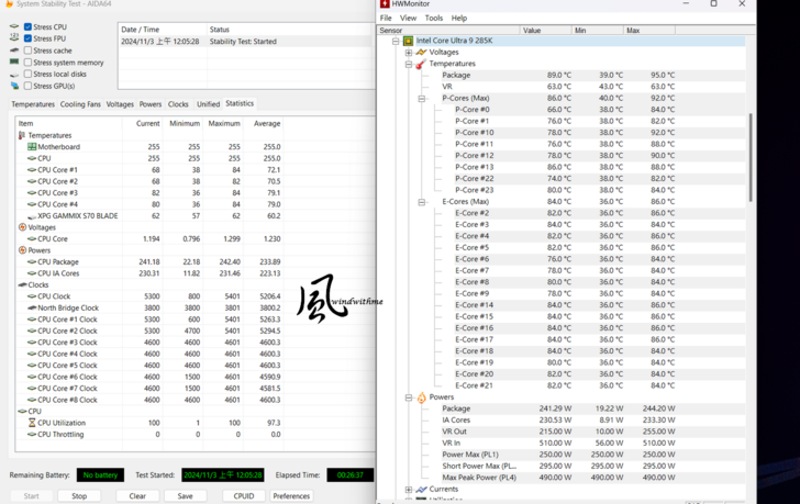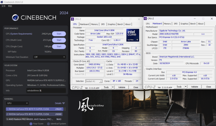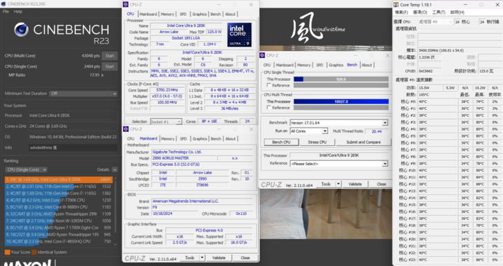 285K規格為8P-cores + 16E-cores所組成共24核24執行緒,Max Turbo最高分別達5.7G與4.6G。