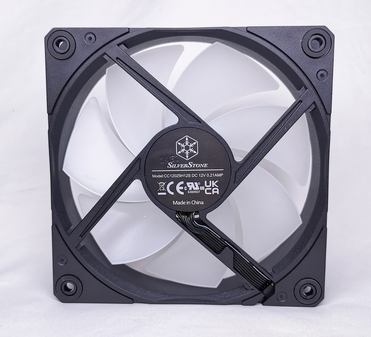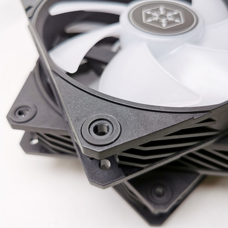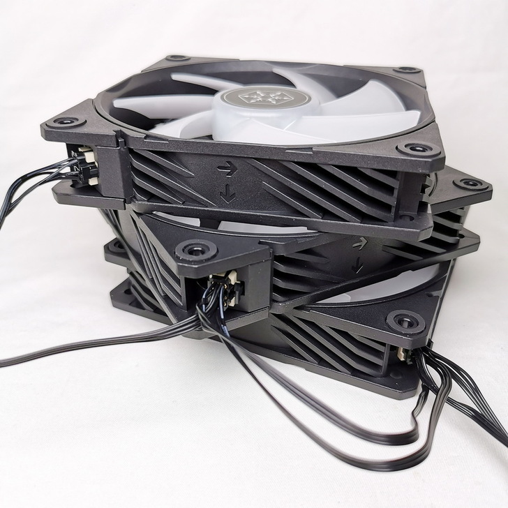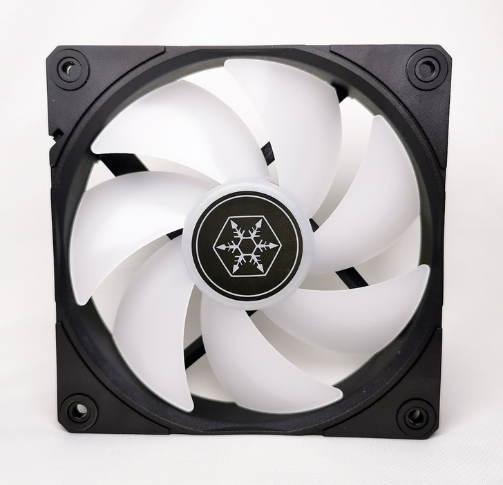 銀欣 NovaPeak 360 ARGB 配備 3 個 4-pin PWM 風扇,最高轉速 2,000 RPM,7 片扇葉結構並在風扇中心內部有 LED 燈珠帶來 RGB 光效。