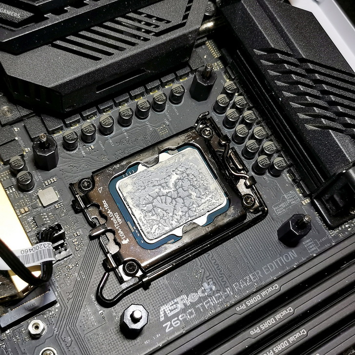 ▼ CPU散熱膏當然要先確定均勻,四個角落的塑膠套筒先裝上。