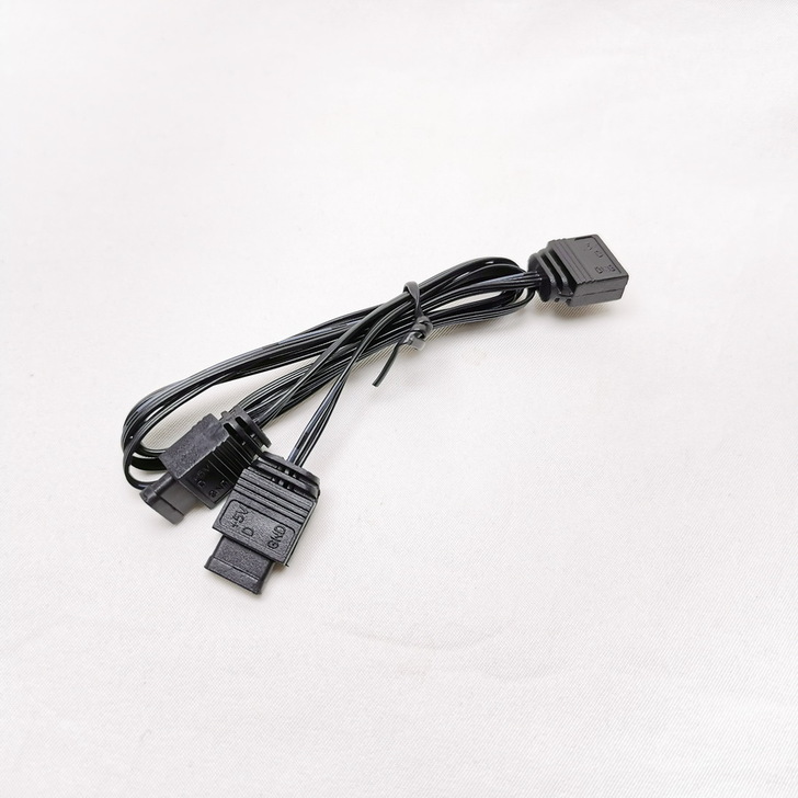 ▼ NovaPeak風扇 菊花鏈線材,同步實現PWM和ARGB訊號從單一接頭到多個風扇設計。(4-pin PWM 風扇 + 5v 3-pin ARGB 串接線)
