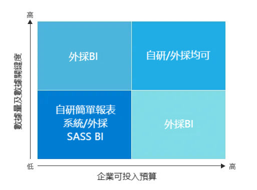 答案是:我們建議這些企業直接選擇外購成熟BI系統,避免自行開發。