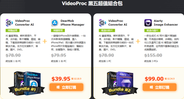 1. VideoProc Converter AI 終身1PC + DearMob iPhone Manager 終身1PC: 僅$39.95