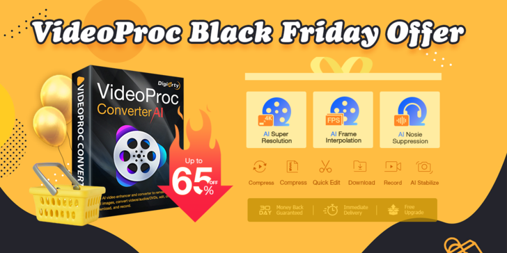 一年一度的黑五特惠盛典來了!VideoProc為您帶來全新活動,超值折扣和翻牌抽大獎,好禮等你來拿!此次活動推出多款優惠套餐,涵蓋視頻處理、轉換、編輯、圖片升級以及音頻處理等各類需求,滿足不同使用者的需求。活動限時進行中,趕緊行動,抓住屬於你的專屬折扣吧!