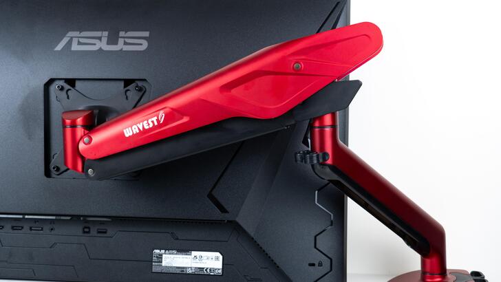 WAVEST 螢幕支架可選購一組 RGB 燈條搭配,完全了電競螢幕支架「電競」之名。