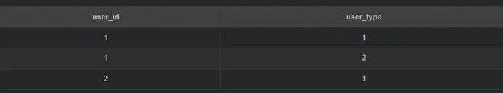 group by user_id, user_type; — 返回1, 1; 1, 2; 2, 1