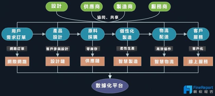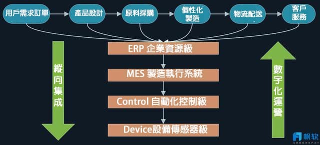 在供應鏈環節中應用精實生產思想,推動從訂單型生產模式、零庫存採購到智慧物流系統的橫向集成數位平台。該平台涵蓋感測器級、自動化控制級、製造執行系統級及企業資源級四層結構,實現縱向數據集成,支撐數位化運營。