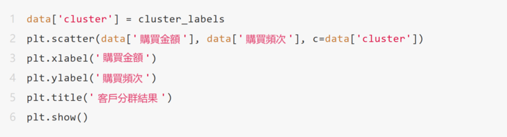 接著,我們可以使用KMeans()函式進行聚類分析: