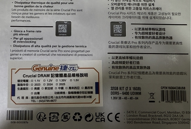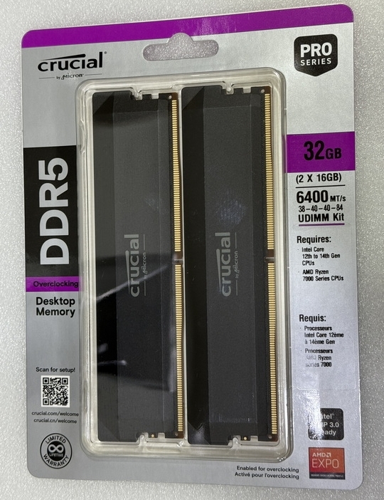 Crucial PRO DDR5-6400 新版本外包裝紫色邊