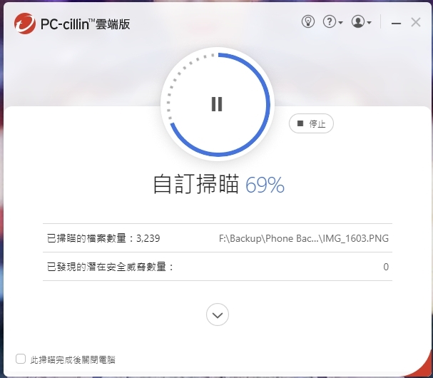 ▼ 手機早就有安裝了 PC-cillin Pro,掃瞄隨身硬碟時還是會一併掃瞄,早就不擔心手機有病毒,但是真的擔心隨身碟有病毒。