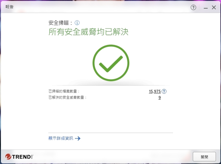 ▼ 結果掃瞄總共發現了 9個 安全威脅,PC-cillin 也順便解決了有問題的威脅。