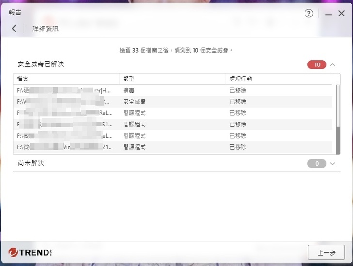 ▼ 顯示詳細資料,可以看到 安全威脅 類型,另外除了病毒外,也感染了 間諜程式。