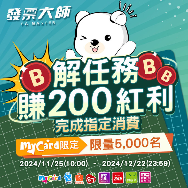 最近看到MyCard和發票大師合作,把購買MyCard的發票存入載具,就可以從發票大師的APP領200點的紅利,可以用來換一些實用的東西,要注意的就是要先歸戶指定通路+綁載具,然後買完點卡存入載具,不是印出來