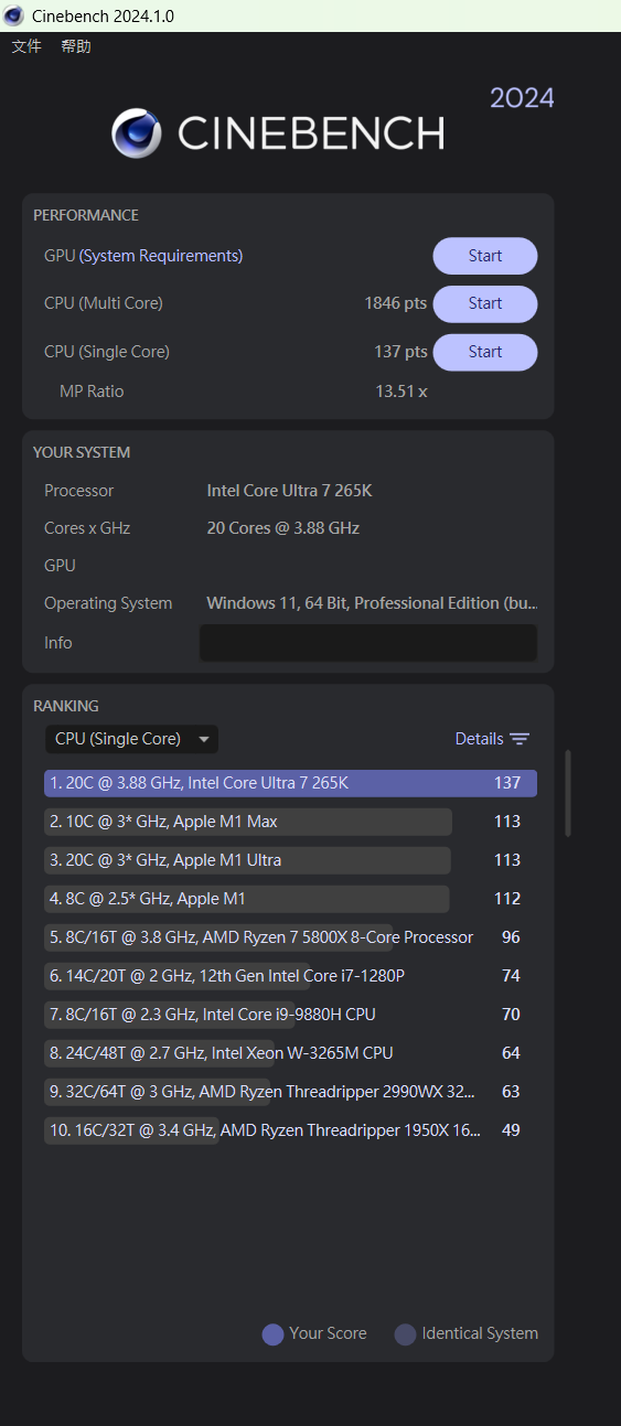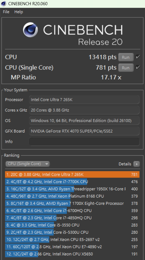 CPU 跑分簡測 (無顯卡) 預計買一張 5080 來配AI算圖輸出