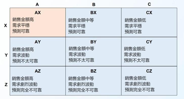 XYZ分類:結合商品銷售的波動性,進一步細分需求的穩定性。