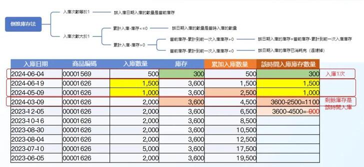 有些公司ERP沒有實現批次管理,同一個產品不同批次入庫的庫存是混在一起的,需要從資料計算的邏輯倒推去計算理論上不同批次產品的庫齡。我們可以基於入庫資料和當前庫存資料,透過跨行計算累加入庫數量,倒推出理論上的庫存分佈。