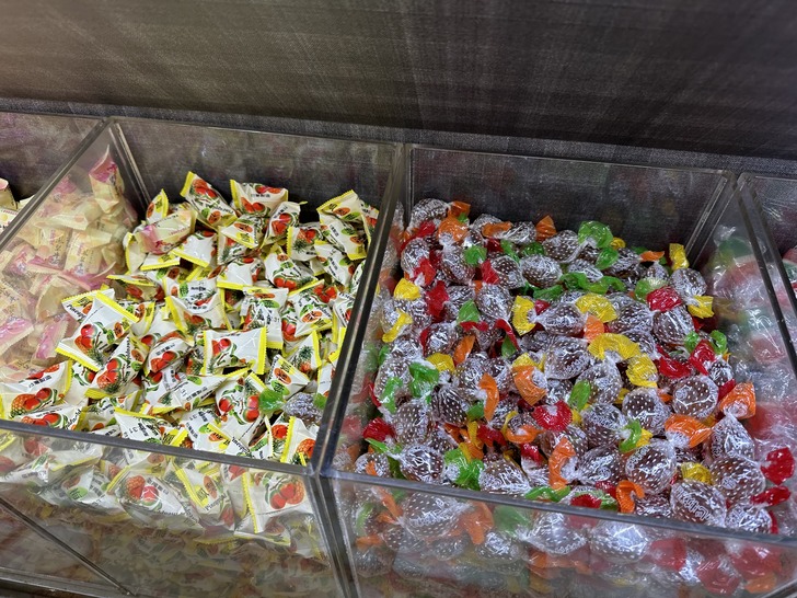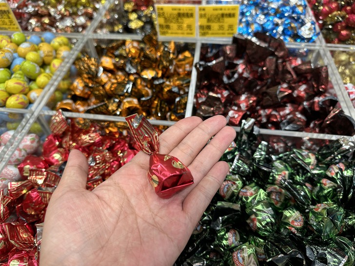結果一踏進店裡 兩側、中間走道以及牆上整片都是糖果、零食