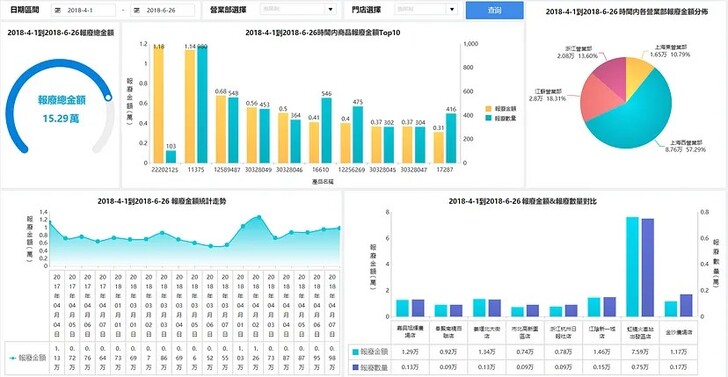 為了優化銷售商品,必須對報廢商品進行數據分析。利用儀表盤合計報廢金額,並通過對比柱狀圖篩選出報廢商品的Top 10,從而發現並解決商品報廢問題。這樣,門店管理層可以對報廢情況進行有效監控,優化商品選擇。