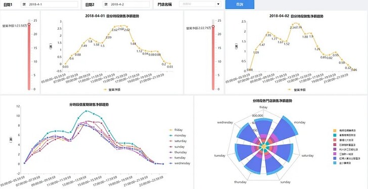門店經營的一個基礎而重要的工作是,管理者需要了解各時間段的銷售情況。特別是在節假日促銷活動中,及時關注和跟蹤各時間段的經營效果,對未來活動的策劃至關重要。透過FineBI,門店可以進行精確的分時段對比分析,追蹤各時間段的經營狀況,從而更好地策劃未來的促銷活動。
