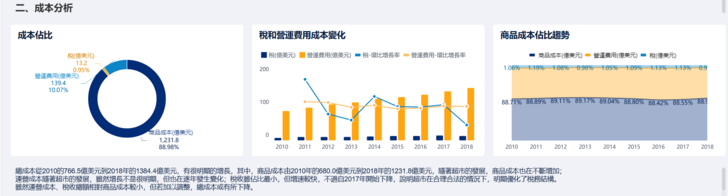 ● 總成本從2010的766.5億美元到2018年的1384.4億美元,有很明顯的增長;