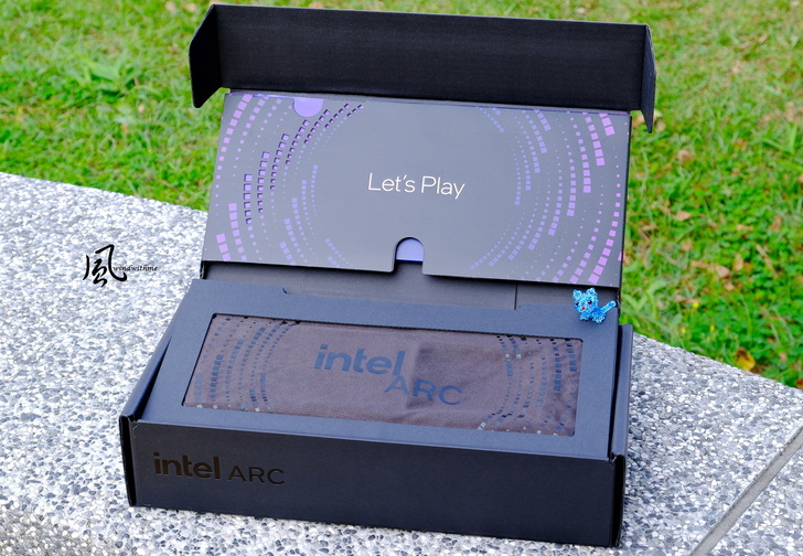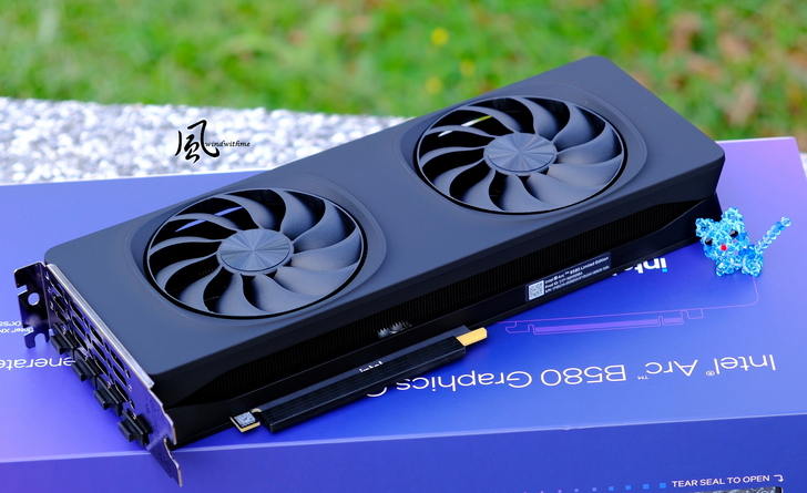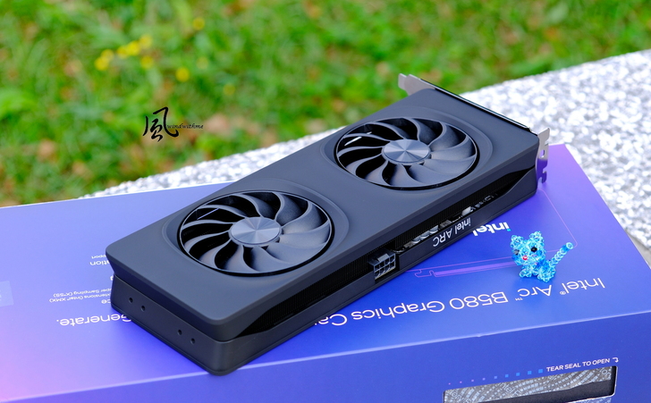 回到本篇主角Intel Arc B580 Limited Edition,外包裝比初代A系列更為精緻, 開盒後內有B580顯示卡、專屬擦拭布、快速使用說明、感謝卡片、專屬貼紙與Arc顯卡紙模型,附紙模型算是相當特別。