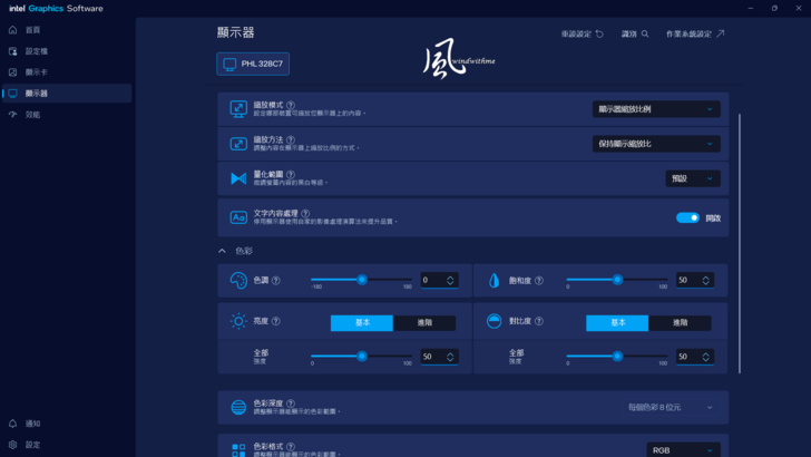 顯示器頁面功能,還記得先前A系列同時安裝Game On驅動程式與Arc控制台,想調整bit色彩深度要另外開啟Intel顯示晶片控制中心,B系列推出後將兩個軟體的功能整合在一起更為方便。