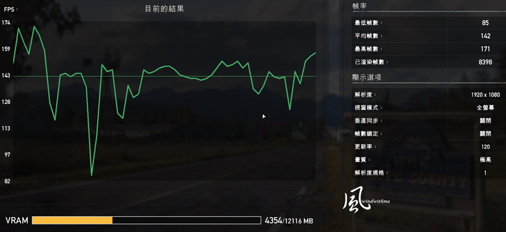 B580 => 最低85、平均142、最高171、已渲染幀數8398;