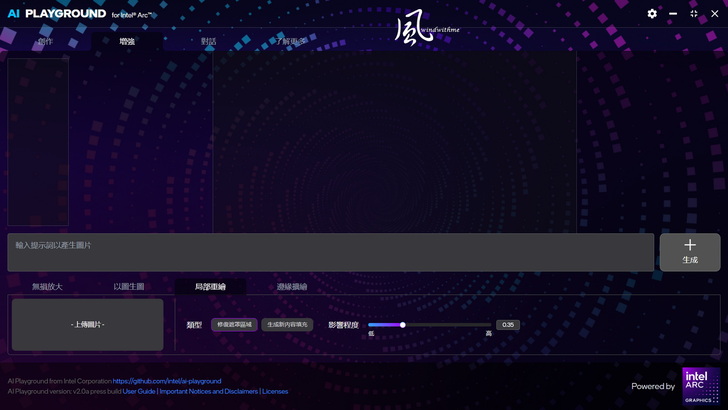 Intel也推出專為Arc設計AI Playground入門應用軟體,更新速度相當快,目前已經來到2.0a版本,並支援多種語系。