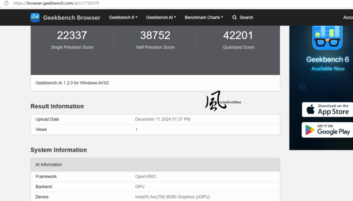 B580 OpenVINO+GPU => Single Precision 22337 / Half Precision 38752 / Quantized 42201;