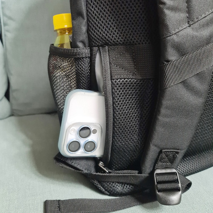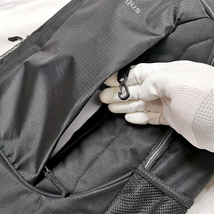 ▼ 背包最前方側邊拉開還附著一個小掛勾,適合掛上鑰匙或悠遊卡。