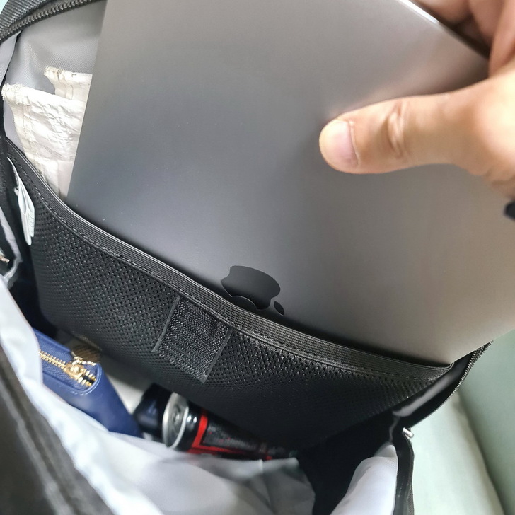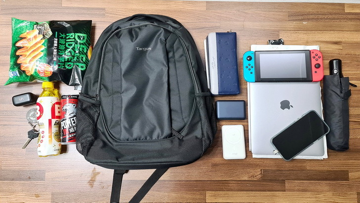 拿出自己出門可以放的所有東西,全部裝進去來考驗此背包的大容量。