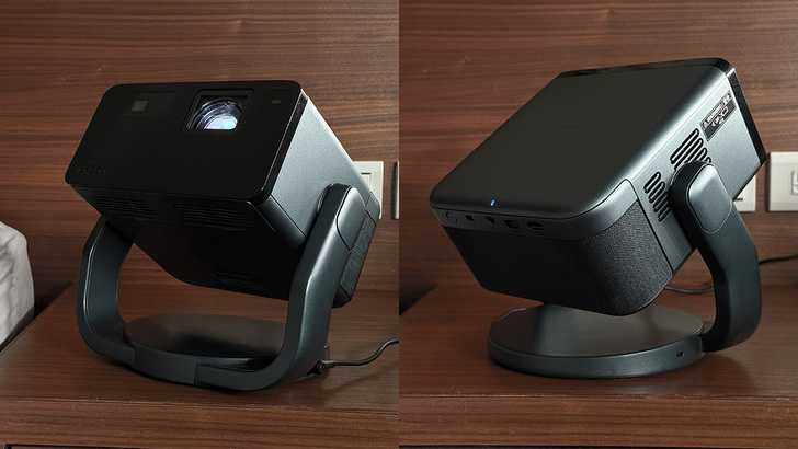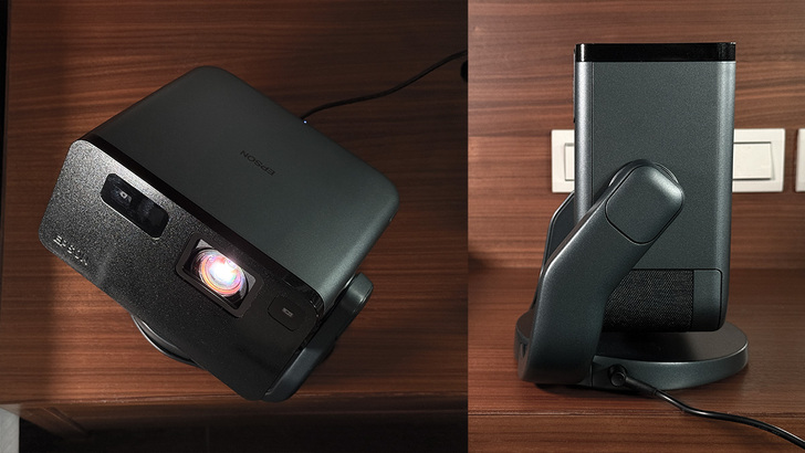 EF-22 採用時尚的黑色鏡面外觀,搭配精緻的蝕刻 Epson 商標,不僅質感滿分,還充滿現代設計感。它配備的多角度旋轉腳架,支援 360 度旋轉與 150 度俯仰,使用者只需稍加調整,就能找到理想的投影角度。不論是放在桌上、地板上,還是其他空間,EF-22 都能輕鬆融入各種擺放場景,設定靈活又方便。