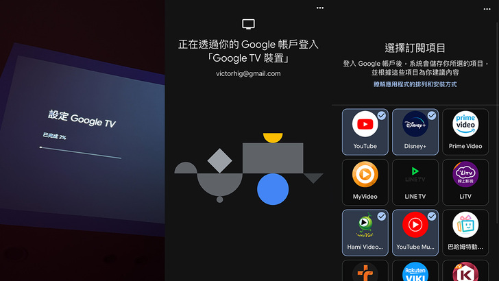 登入 Google 帳戶後,系統會自動同步使用者的個人設定,並提供選項,讓你決定是否連結 Google Home 等智慧家庭裝置,以及啟用 Google 助理功能。啟用後,你可以用語音搜尋或控制內容,還能透過 Chromecast 將影片、音樂等內容直接投放到投影機上。