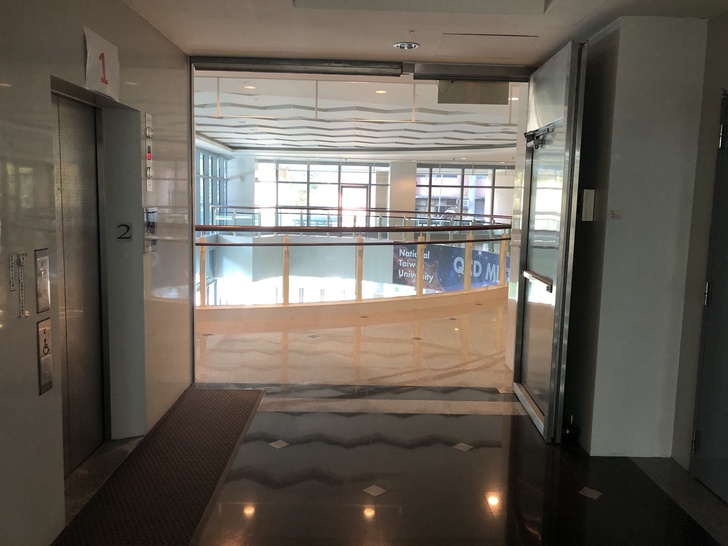 再來走到平面圖左方到底距離演講廳最遠的測試點2位置,轉身面對演講廳方向測速