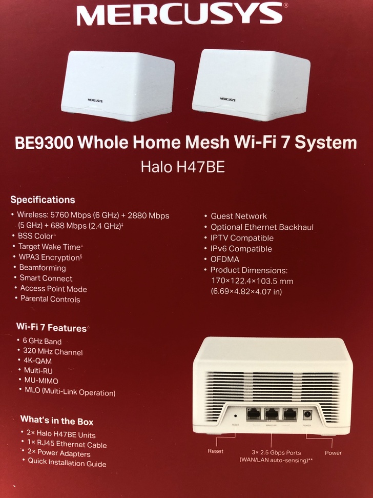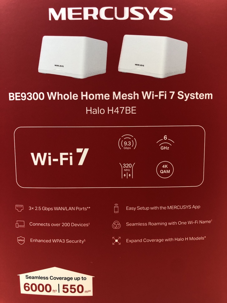 而本次開箱測試的MERCUSYS Halo H47BE Wi-Fi 7 三頻Mesh Wi-Fi分享器是屬於高階機種,它主要強調的是Wi-Fi7壓倒性的速度、320MHz頻道、Multi-Gigabit覆蓋範圍達180坪 的Mesh網路,以及其他配有各項嶄新的技術等等,每一項最新技術的搭配與支撐,唯一的目的就是在於提供使用者超高速的無縫漫遊與保持網路暢通體驗。在這次的測試中,確實也感受到它迴異於以往其他Wi-Fi機種的體驗,可以說是徹底解決了我前述一般人常會遇到的問題。