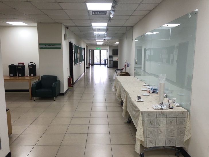 在與會人員陸續進場與會演講開始進行後,刻意走到會場外的公共空間走道上進行速度測試。