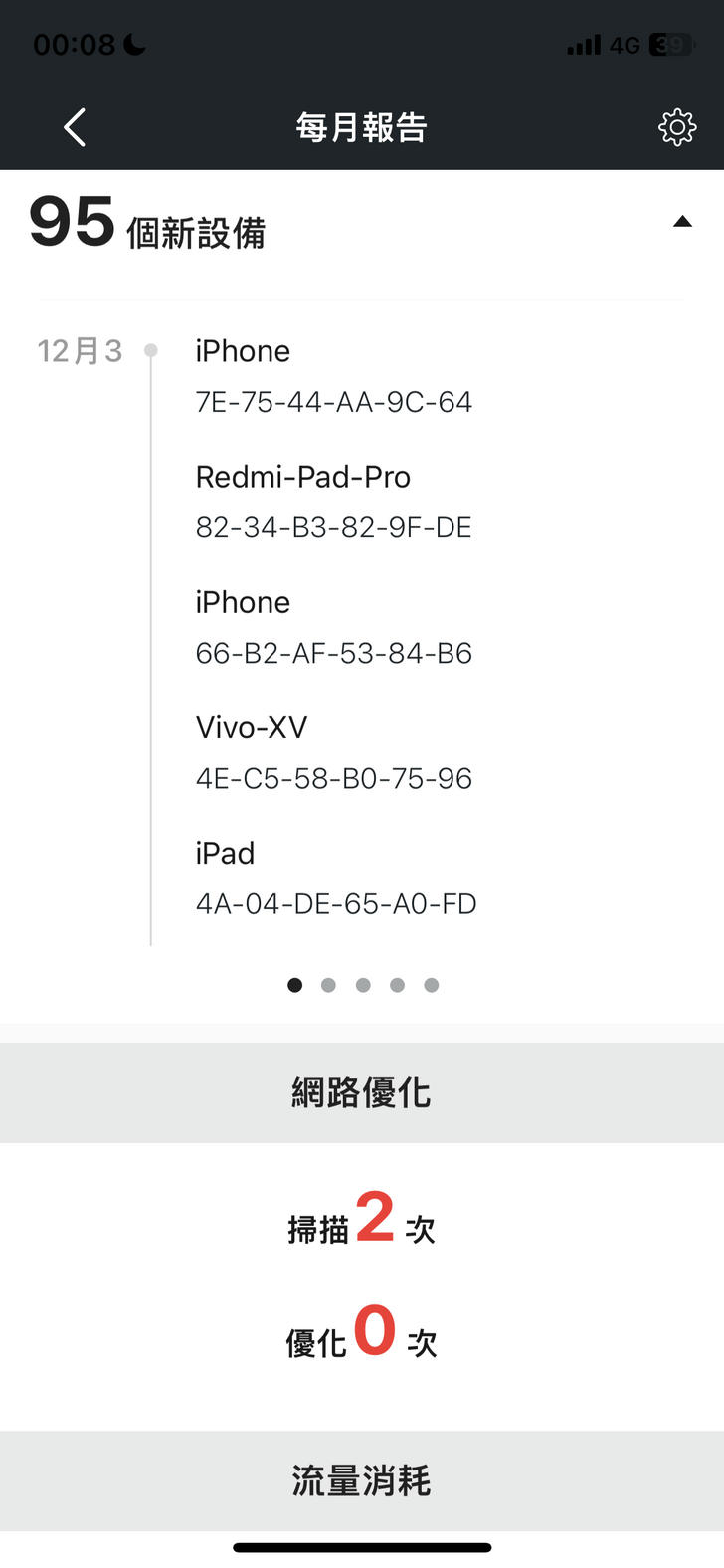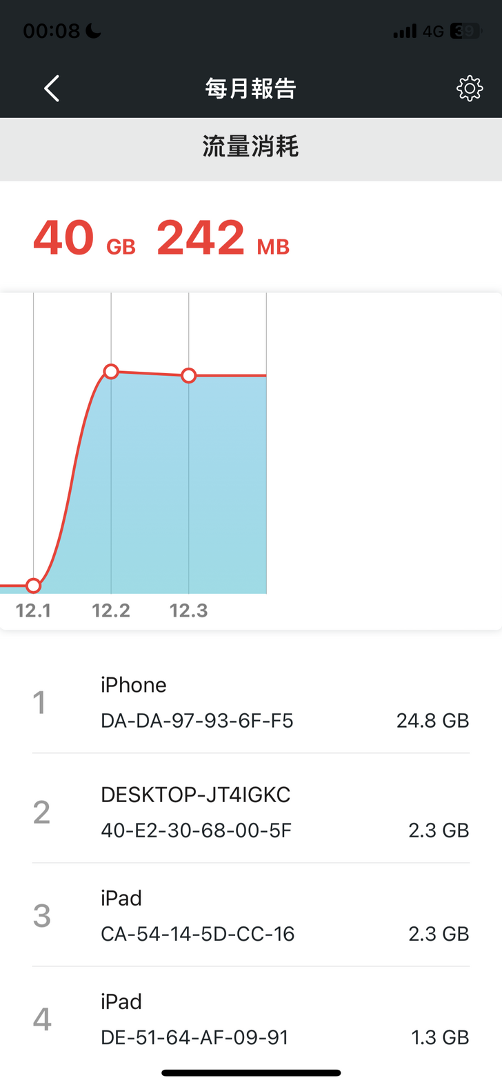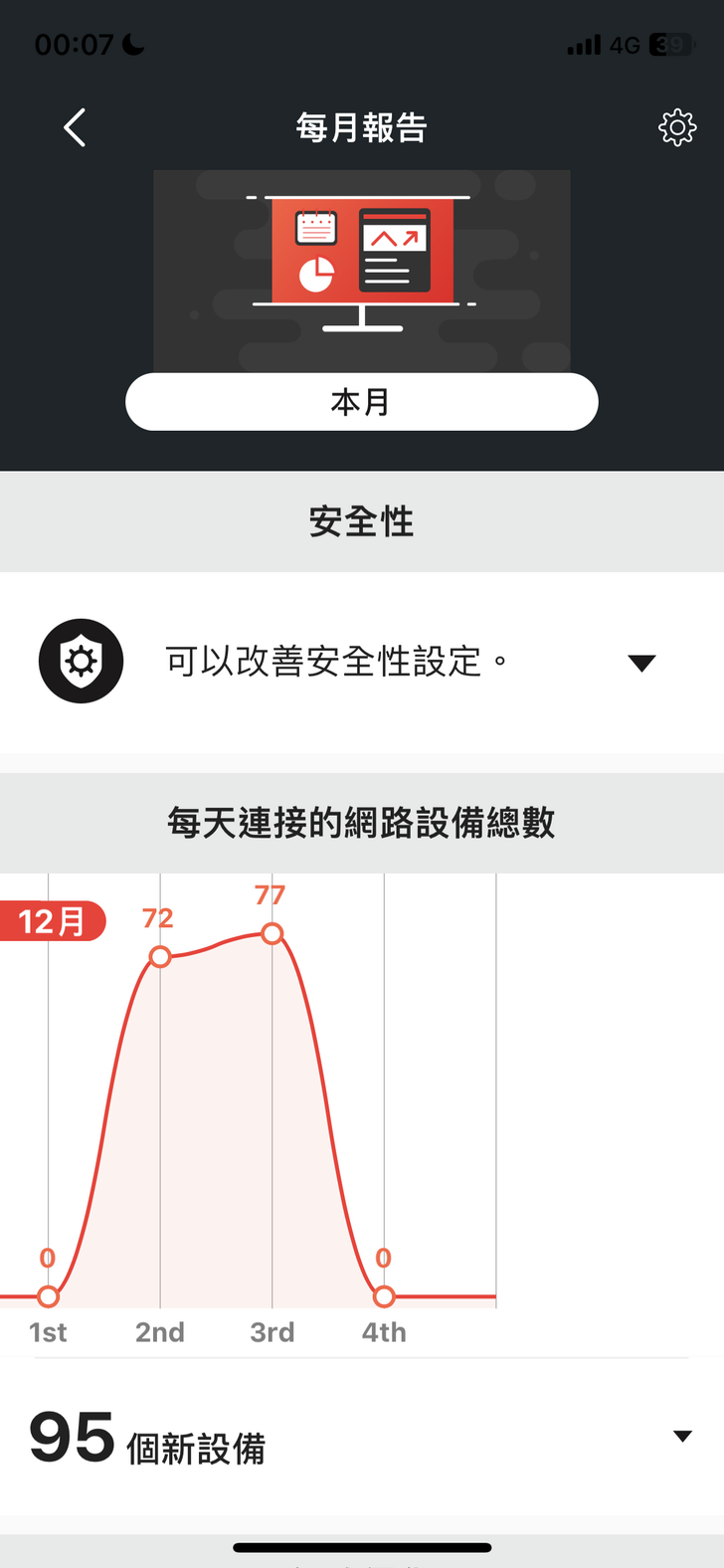 『每月報告』 是用來呈現網路使用狀況的統計報告,有數據有圖表,可以讓使用者清楚了解每個裝置的使用量可以作為對每個裝置控管的依據或是了解小孩平時的網路使用狀況,這個功能也是非常實用。