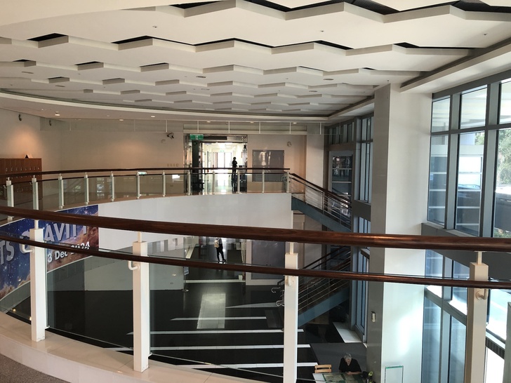 再來走到平面圖右方到底的測試點1位置,轉身面對演講廳方向測速。