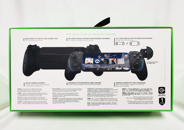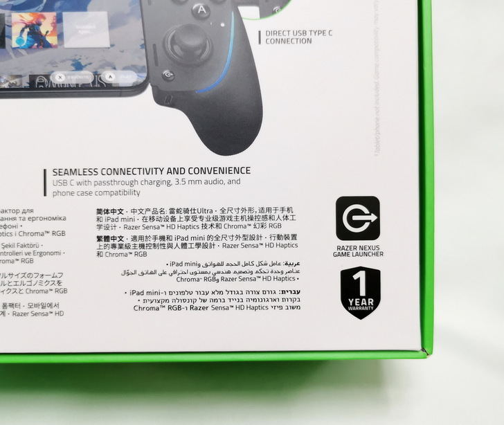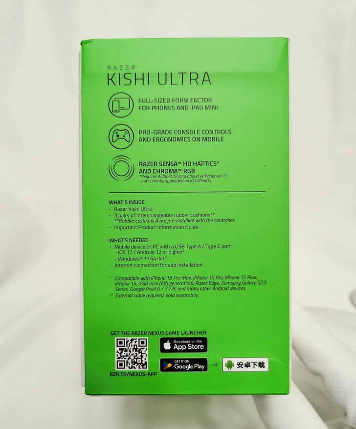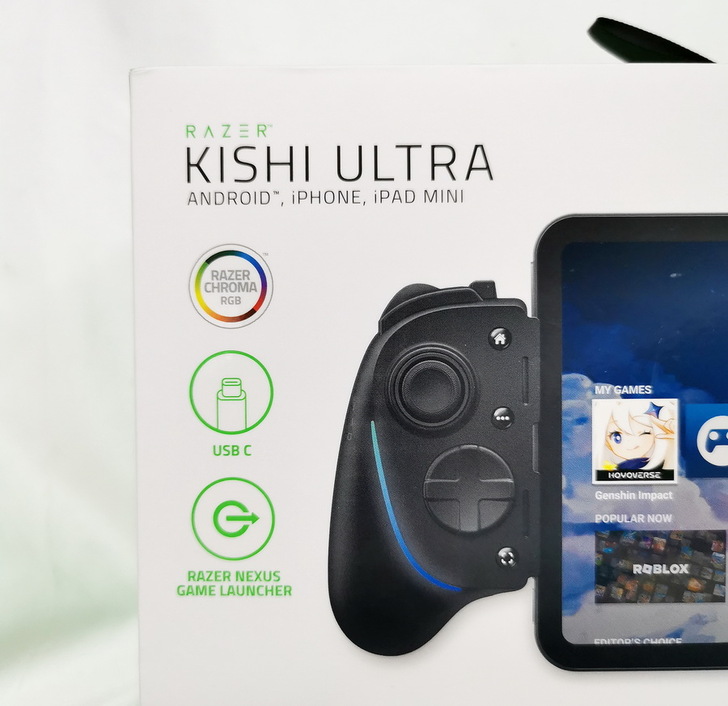 Razer Kishi Ultra 不需拆卸手機殼 隨插即用;搭載 Razer Sensa HD震動技術,提供更細緻的高傳真觸覺回饋;Razer Chroma RGB 可以自訂燈效;透過 NEXUS虛擬控制器,自行設定按鍵配對的功能,讓原本不支援手把的遊戲也可以運作。