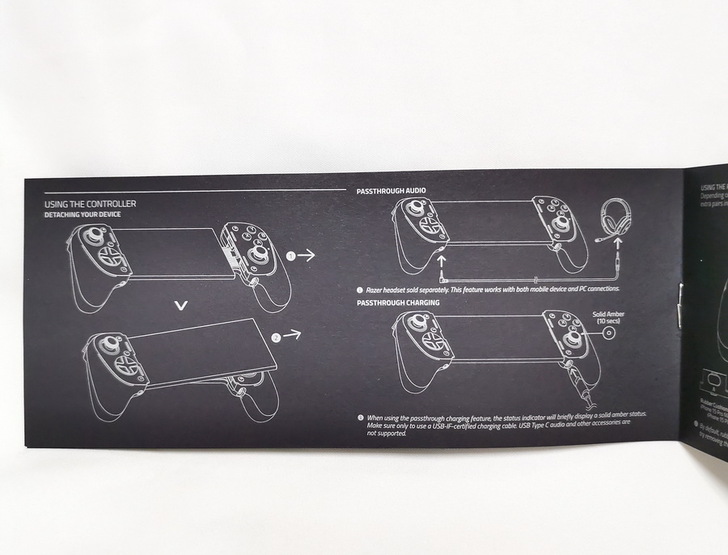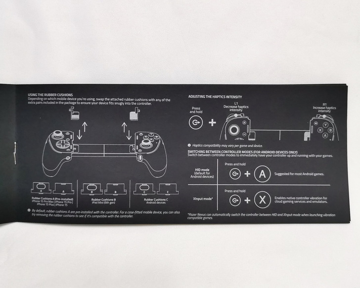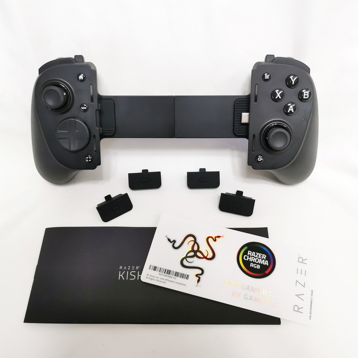 ▼ Razer Kishi Ultra本體、橡膠軟墊、說明書、信仰貼紙