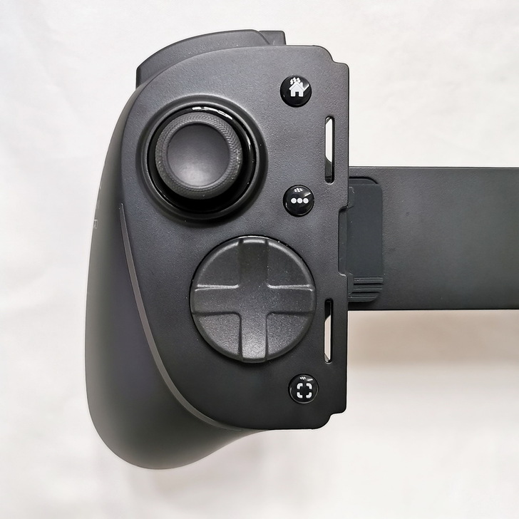 ▼ 左邊設計 - 類比拇指搖桿、機械觸感8向方向鍵、三個特殊鍵(Home鍵、選單鍵、與螢幕截圖鍵)