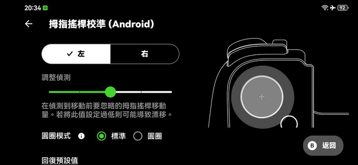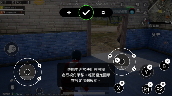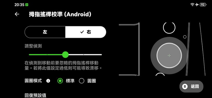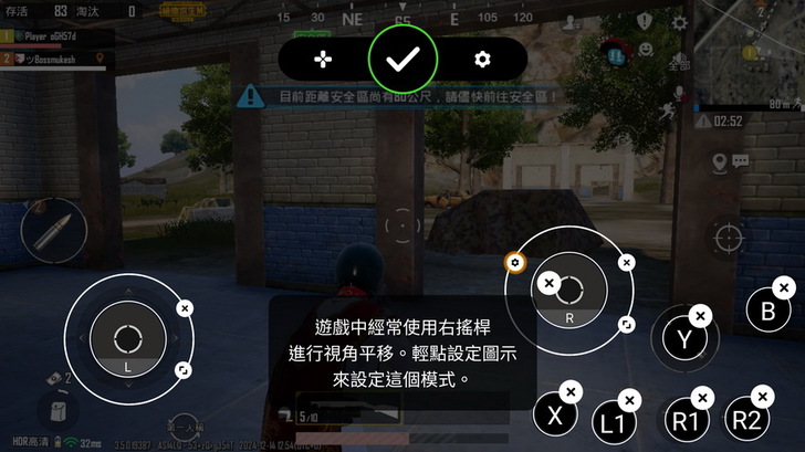 ▼ 設定 右搖桿 還會貼心的提示使用在視角模式,都設定好以後點擊中央的打勾就好了。