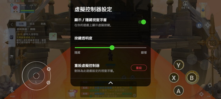 ▼ 當然也可以讓 虛擬控制器 隱藏起來,也可以調整按鍵的透明度。
